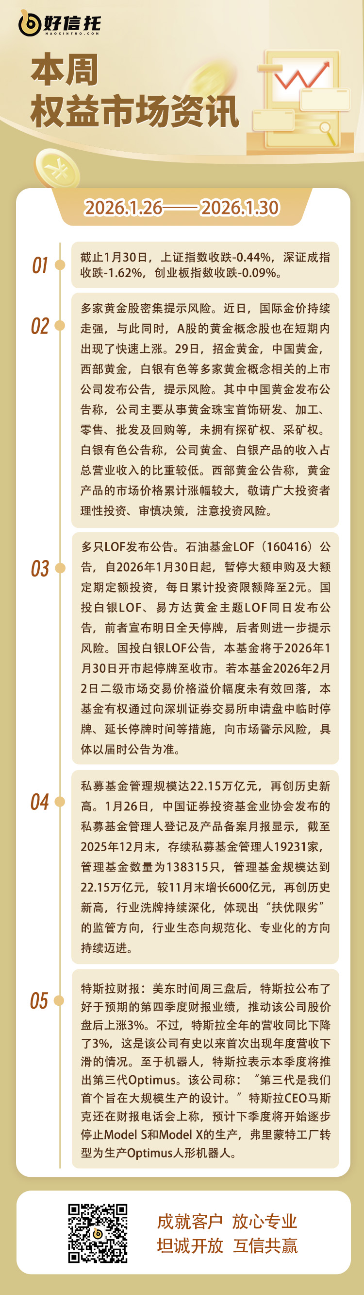 每周市场信息汇总(1月26日至1月30日)